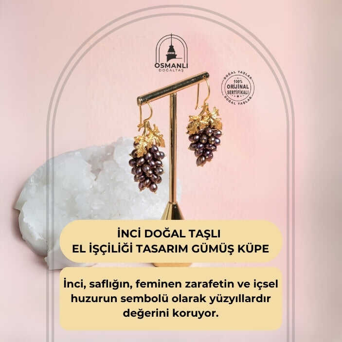 Sertifikalı İnci Doğal Taşlı El İşçiliği Tasarım Gümüş Küpe
