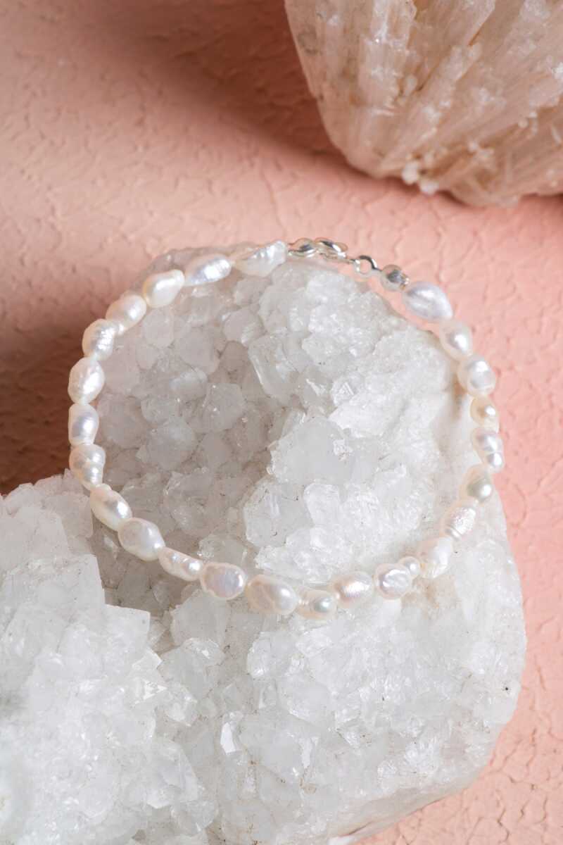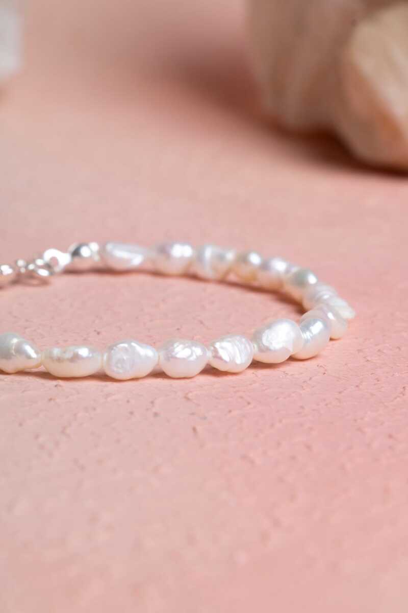 Sertifikalı İnci Gümüş Kapama Doğal Taş Bileklik (SK:381)
