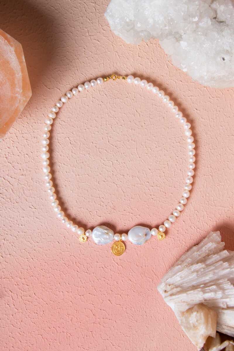 Sertifikalı Güneş Taşı, İnci Doğal Taş Kolye (SK:242)