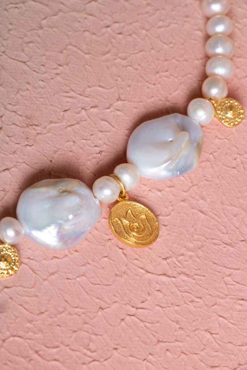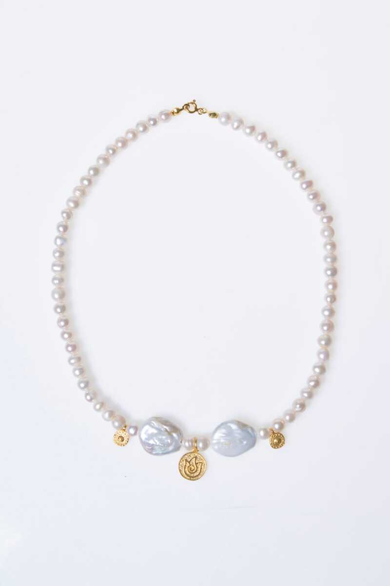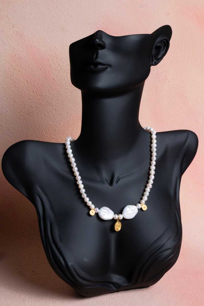 Sertifikalı İnci Gümüş Lale Aparatlı Doğal Taş Kolye (SK:021)