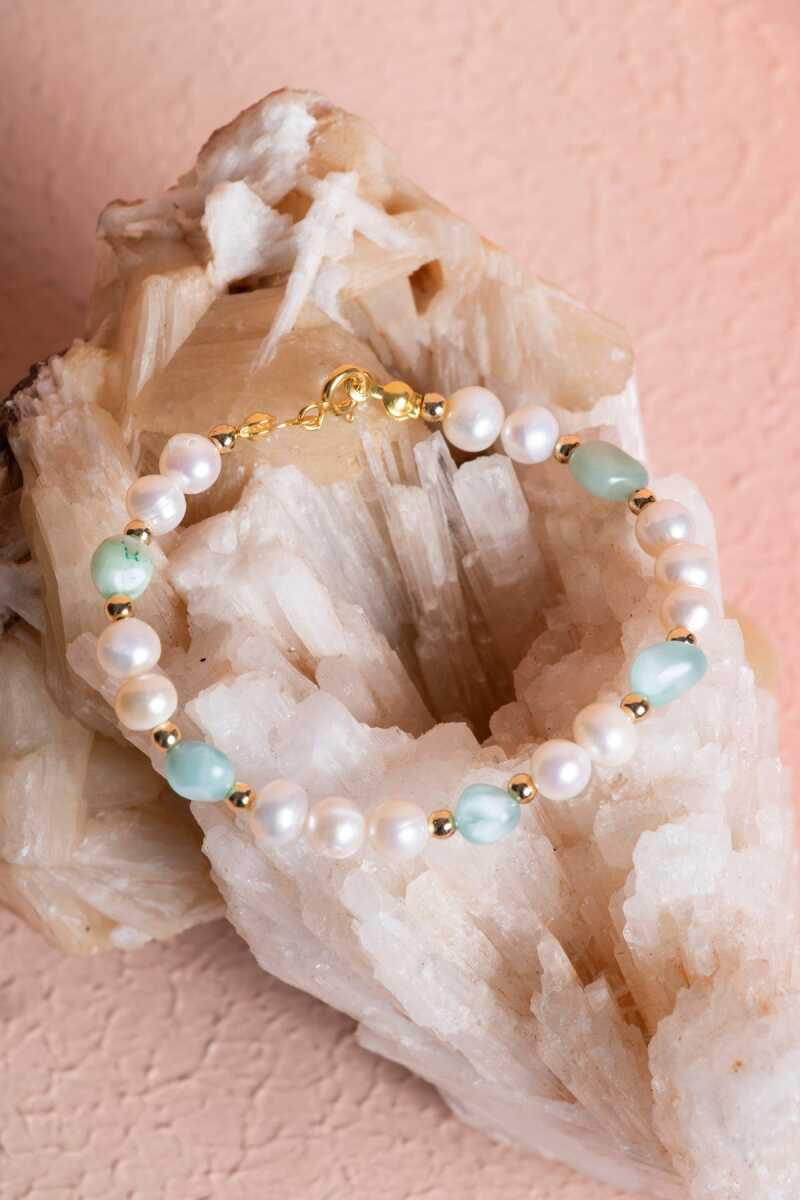 İnci, Larimar Gümüş Aparatlı Doğal Taş Bileklik Denizin dinginliğini, saflığını ve zarafetini bileğinizde birleştirin. İnci'nin asaleti ve Larimar'ın huzur dolu mavi enerjisi, şık bir Gümüş Aparat ile tamamlanarak bu özel bileklikte buluşuyor. Bu bileklik, size duygusal denge, sakinlik ve asil bir duruş sağlayan değerli bir objedir. İnci ve Larimar'ın Mistik Sinerjisi İnci (Zarafet ve Denge): Saflığın ve asaletin sembolüdür. Yumuşak enerjisiyle duygusal yoğunluğu yatıştırır, içsel dinginliği sağlar. Larimar (Sakinlik ve İletişim): "Atlantis Taşı" olarak da bilinen Larimar, denizin ve gökyüzünün sakinliğini getirir. Stresi azaltır ve berrak, güvenli iletişimi teşvik eder. Enerji Kombinasyonu: İnci'nin sakinleştirici ve dengeleyici enerjisi ile Larimar'ın huzur veren enerjisi birleşerek size derin bir içsel sükûnet sunar. Gümüş Aparat Zarafeti: Bileklikte kullanılan kaliteli Gümüş Aparat, taşların doğal renklerini vurgular, tasarıma sofistike ve kalıcı bir değer katar. Doğal Tasarımın Çekiciliği Larimar'ın huzur dolu mavi tonları ile İnci'nin sedefli, narin ışıltısı, bileğinize mistik ve zarif bir dokunuş katar. Bu bileklik, enerjinizi sürekli olarak pozitif ve dengede tutar.