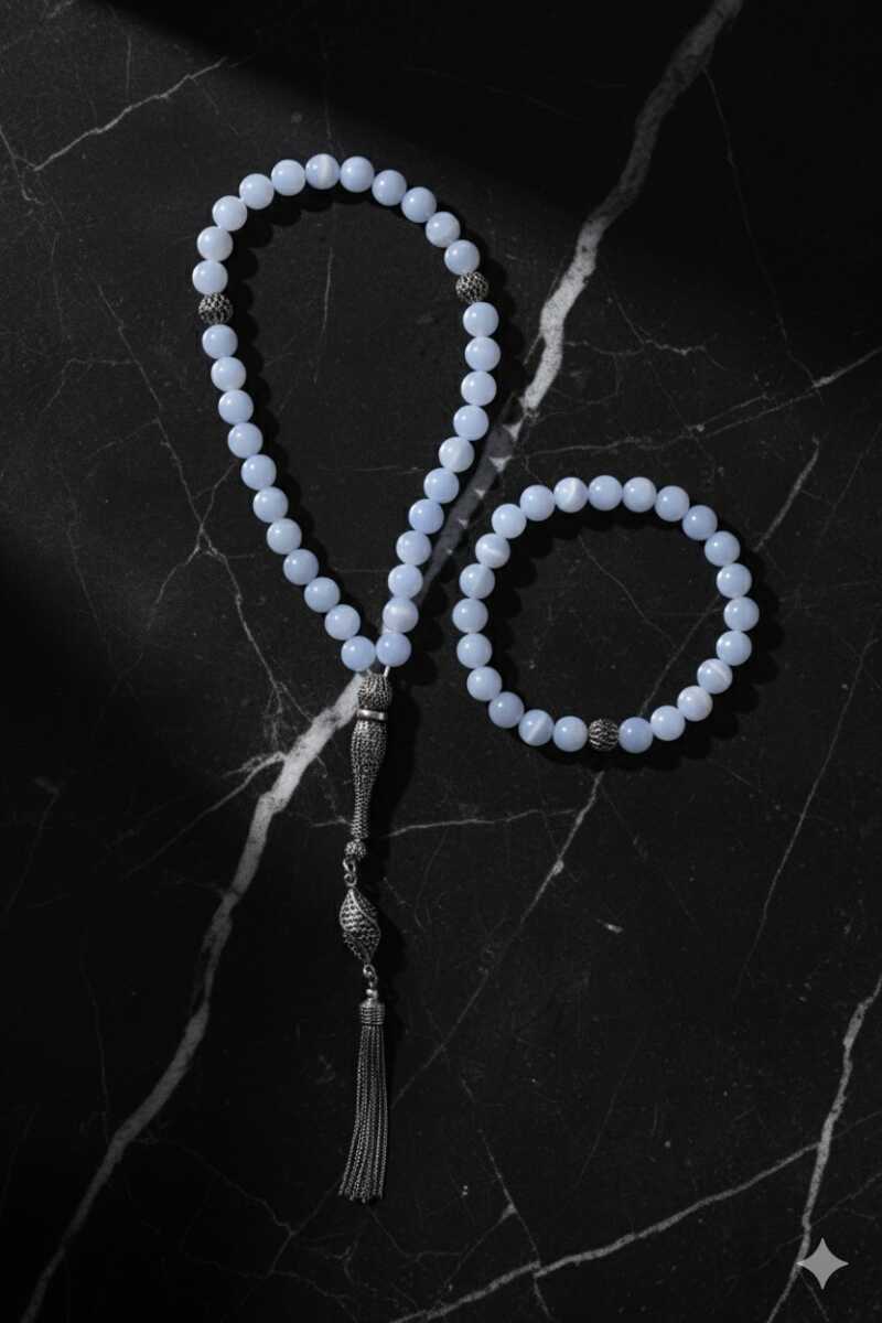 Sertifikalı Kalsedon 925 Ayar Gümüş 8 mm İmameli Tesbih & Bileklik Seti Huzur, dinginlik ve iletişimin sembolü olan Kalsedon doğal taşı ile tanışın. Zarif 925 Ayar Gümüş detaylarıyla tamamlanan Sertifikalı Kalsedon Tesbih & Bileklik Seti, hem şık bir aksesuar hem de duygusal dengeyi sağlayan özel bir obje olarak hayatınıza değer katacak. Kalsedon Taşının Büyüleyici Faydaları Huzur ve Dinginlik: Kalsedon, içsel huzuru teşvik eder, sakinleştirici etkisiyle stresi ve kaygıyı hafifletmeye yardımcı olur. Duygusal dengeyi destekler. İletişim ve Anlayış: Sözlü iletişimi ve kendini ifade etme yeteneğini güçlendirir. Anlayışı artırarak insanlar arasındaki bağları kuvvetlendirir. Negatif Enerji Emici: Çevredeki olumsuz enerjileri emerek pozitif bir atmosfer yaratır. Hem ruhunuzu hem de çevrenizi arındırmaya yardımcı olur. Cömertlik: Taşıyan kişide cömertliği, nezaketi ve iyi niyeti teşvik ettiğine inanılır. Bu özel set, orijinalliği ve kalitesi onaylanmış gerçek Kalsedon taşı kullanılarak üretilmiştir. Her bir parça, ustalıkla işlenmiş 925 ayar gümüş imame ve detaylarla zenginleştirilmiştir. Kalsedon'un doğal enerjilerinden gün boyu faydalanırken, zarif ve yumuşak renk tonlarıyla da stilinizi tamamlayın. Şimdi sipariş verin ve Sertifikalı Kalsedon 925 Ayar Gümüş Tesbih & Bileklik Seti ile hem ruhunuzu hem de iletişiminizi güçlendirmeye başlayın.