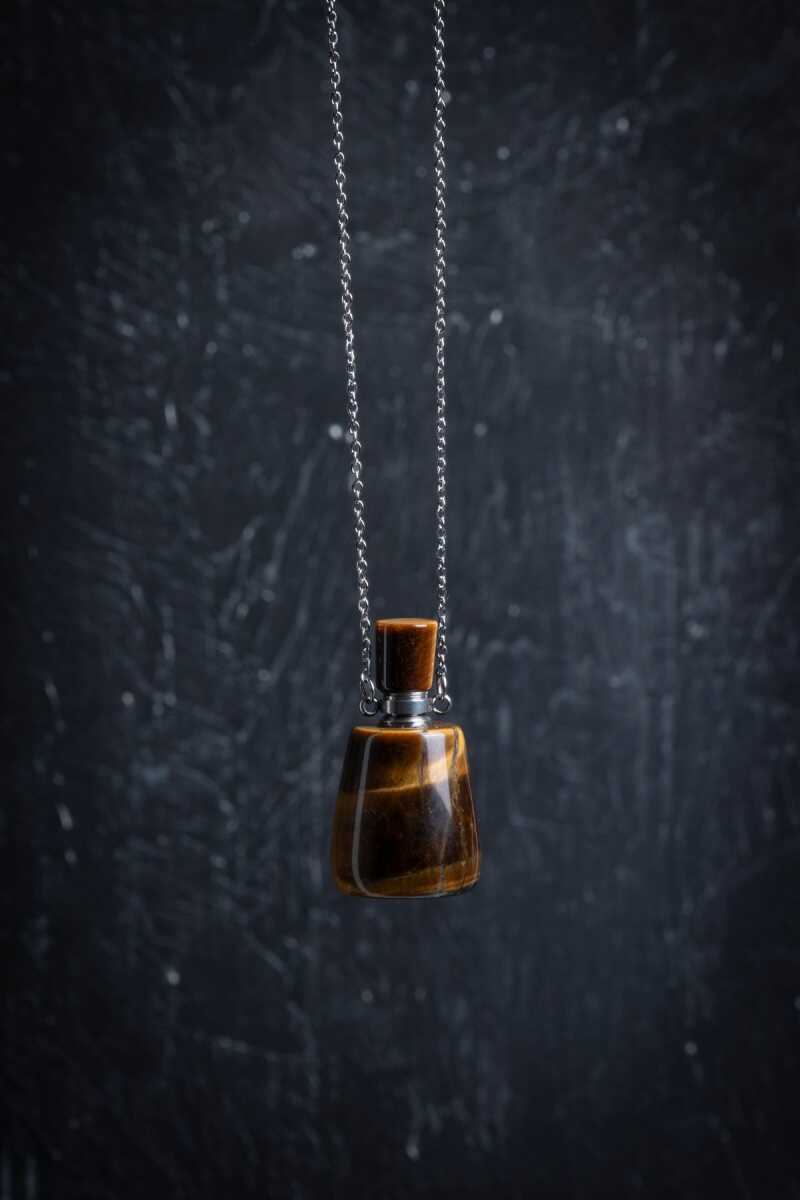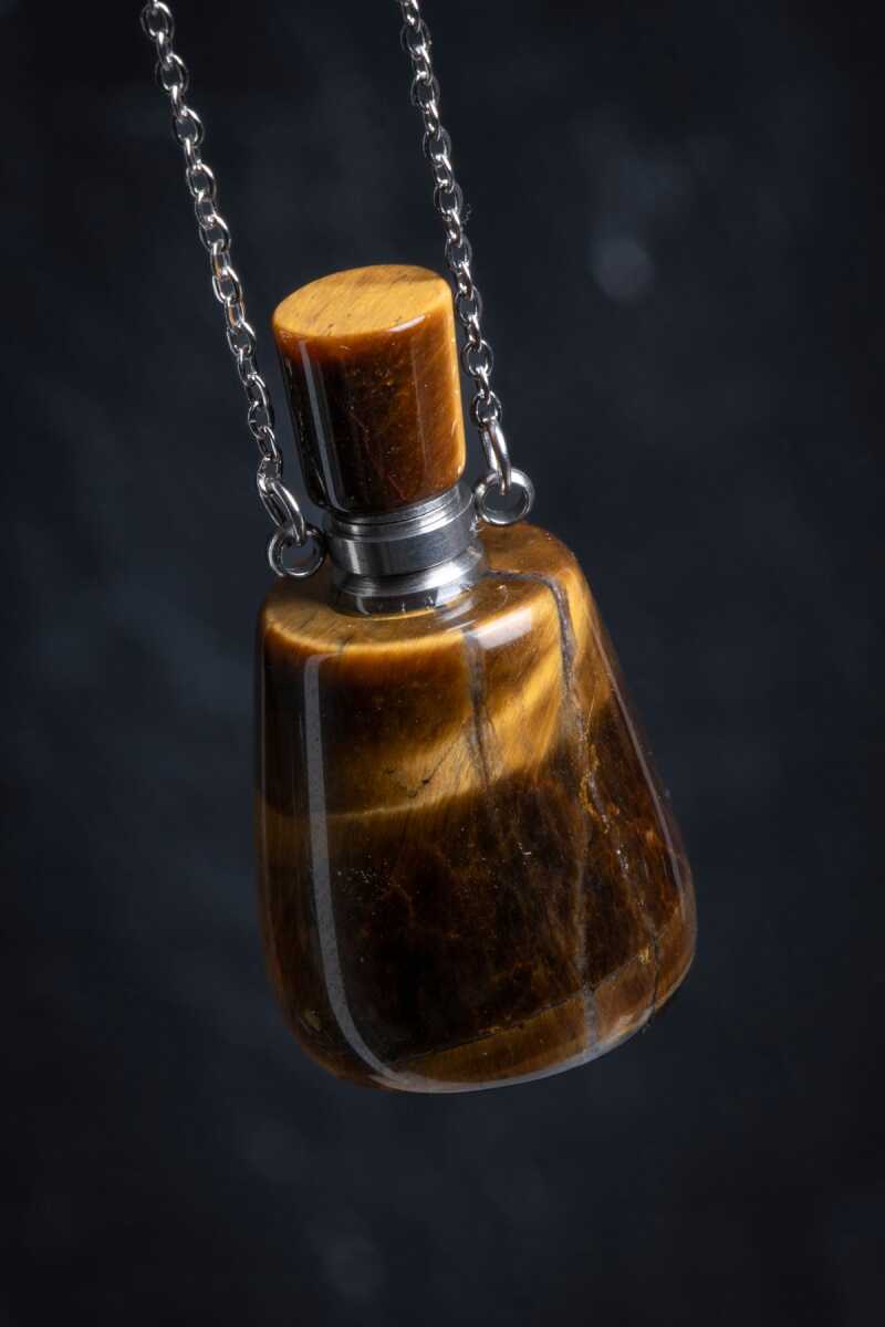 Sertifikalı Kaplan Gözü Doğal Taş Esans Şişesi Kolye