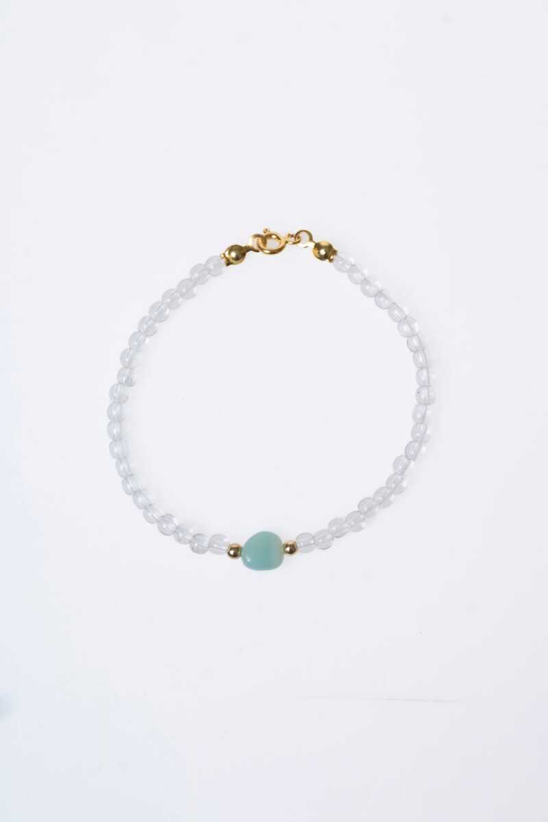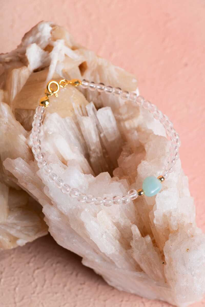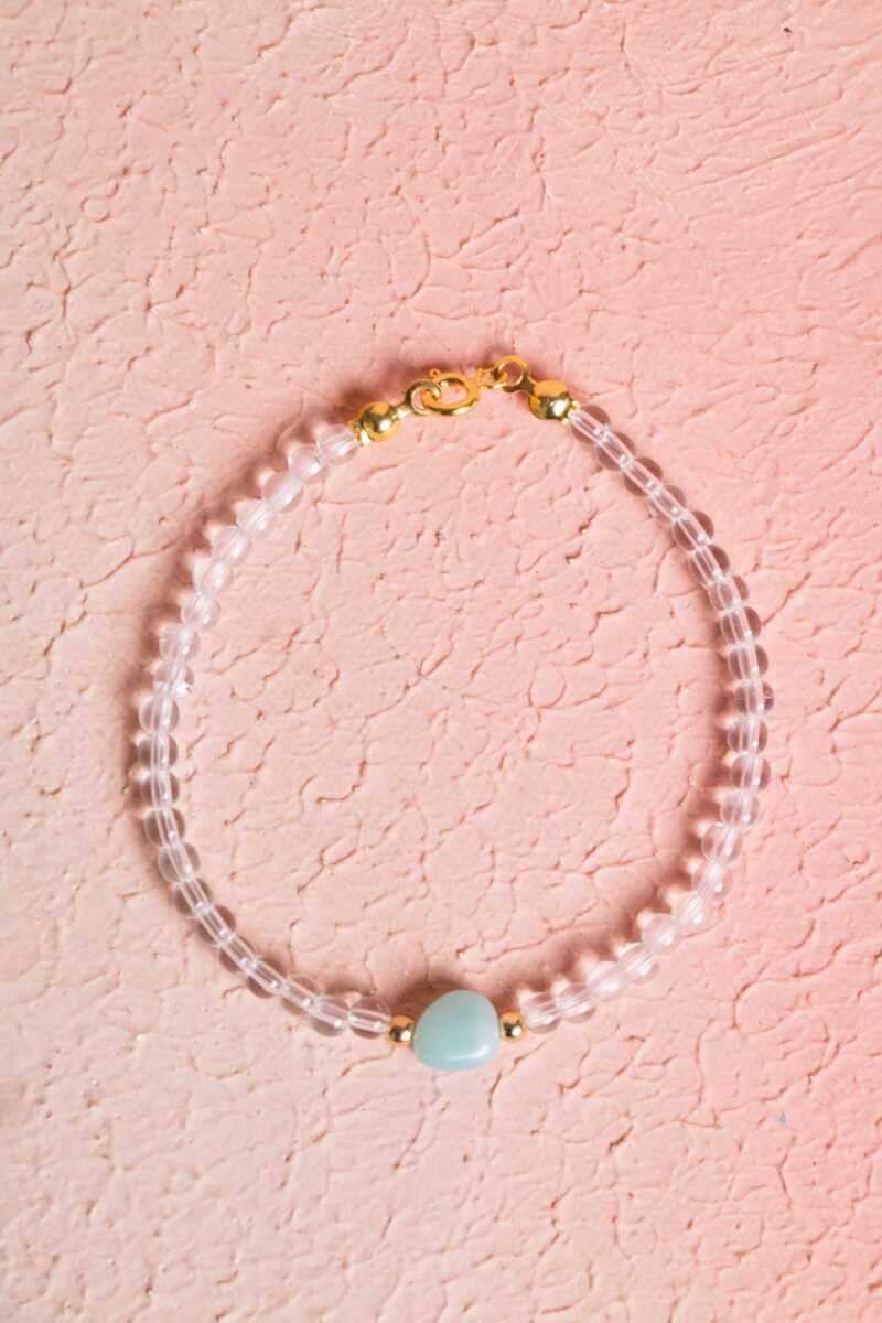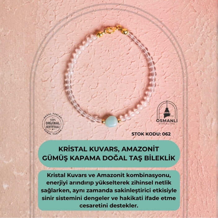 Sertifikalı Kristal Kuvars, Amazonit Gümüş Kapama Doğal Taş Bileklik (SK:062)