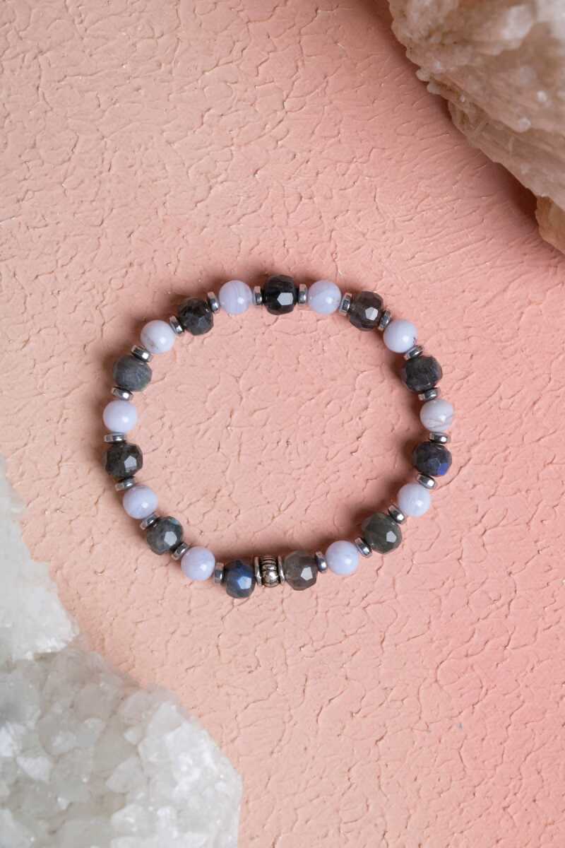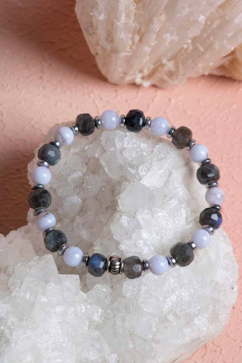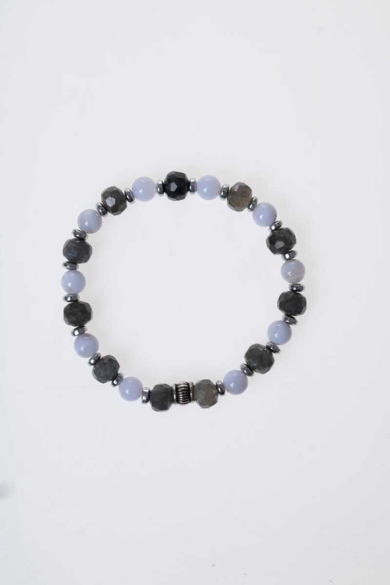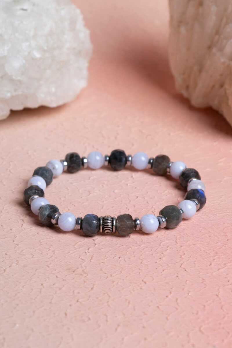 Sertifikalı Labradorit, Kalsedon Gümüş Aparatlı Doğal Taş Bileklik (SK:385)