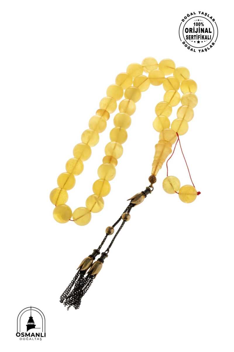 Hakiki Doğal Sertifikalı Sitrin 10 Mm Doğal Taş 33&39;lük Tesbih - Doğal Taşlı İmame 925 Ayar Gümüş