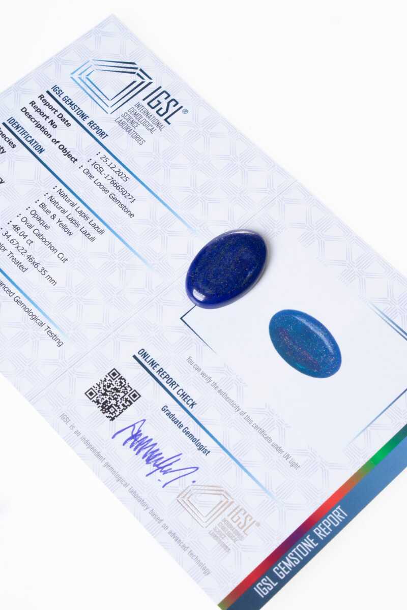 Sertifikalı Lapis Lazuli Doğal Taş Kabaşon Derin lacivert rengi ve altın sarısı pirit yansımalarıyla tanınan Sertifikalı Lapis Lazuli Kabaşon, tarih boyunca bilgelik ve asaleti simgeleyen özel bir doğal taştır. Pürüzsüz yüzeyli kabaşon kesimi, taşın doğal dokusunu ve renk derinliğini en saf haliyle ortaya çıkarır. Koleksiyonluk – Sınırlı adet. Lapis Lazuli Taşının Bilge ve Güçlü Enerjisi Lapis Lazuli (Bilgelik, İfade ve İçsel Güç):Lapis Lazuli taşı, zihinsel berraklık, sezgisel farkındalık ve doğru iletişimle ilişkilendirilir. Kişinin kendini daha net ifade etmesine yardımcı olduğuna, içsel gücü ve özgüveni desteklediğine inanılır. Doğal lacivert zemin üzerindeki pirit damarları sayesinde her Lapis Lazuli kabaşon benzersiz ve tekrarlanamaz bir karakter taşır. Kabaşon Kesim & Zamansız Form Kabaşon kesim, Lapis Lazuli’nin doğal desenlerini bozmadan yumuşak ve parlak bir yüzey sunar. Bu klasik kesim; yüzük, kolye, broş ve özel tasarım mücevher uygulamalarında sıkça tercih edilen zamansız bir formdur. Sertifikalı ve Özgün Bu kabaşon, orijinalliği ve kalitesi onaylanmış Sertifikalı Doğal Lapis Lazuli Taşı kullanılarak sunulmaktadır. Doğal taş koleksiyoncuları, mücevher tasarımcıları ve kişisel üretimler için estetik ve anlamlı bir seçimdir. Bilgelik, zarafet ve güçlü bir ifade arayanlar için özenle seçilmiştir.