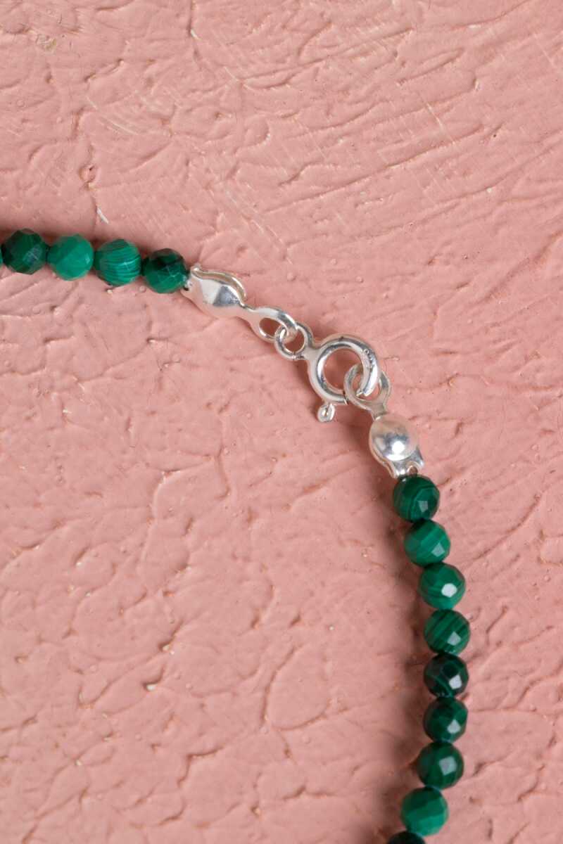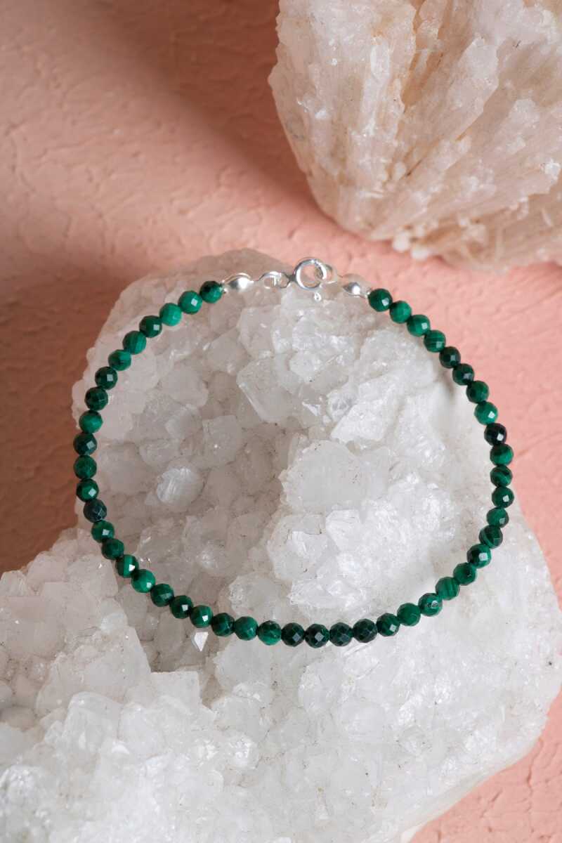Malahit Doğal Taş Bileklik (925 Ayar Gümüş Kapama & Kilitli Aparat) Doğanın koruyucu yeşil enerjisi, gümüşün zarafeti ve güvenli tasarımıyla bileğinizde. "Dönüşümün ve Gücün Taşı" olarak bilinen Malahit, bu özel tasarımda yüksek kaliteli 925 ayar gümüş kapama ve sağlam kilit sistemiyle buluştu. Hareli desenleri ve doygun yeşil tonlarıyla dikkat çeken bu bileklik, hem spiritüel bir koruma kalkanı hem de zamansız bir aksesuar arayanlar için tasarlandı. Malahit Taşının Rehber Özellikleri Enerji Kalkanı: Malahit, çevredeki negatif enerjileri ve elektromanyetik kirliliği (telefon, bilgisayar vb.) emerek aurayı temiz tutmasıyla ünlüdür. Duygusal Denge: Kalp sıyla uyumludur. Bastırılmış duyguları şifalandırır, empati duygusunu geliştirir ve içsel huzur sağlar. Değişim ve Cesaret: Hayatınızda yeni bir sayfa açmak istediğinizde size gerekli olan motivasyonu ve cesareti aşılar. Bolluk ve Bereket: İş hayatında başarıyı ve maddi bolluğu çekmek için kullanılan en güçlü kristallerden biridir. Tasarım ve Teknik Detaylar 925 Ayar Gümüş Kapama: Bilekliğin kilit mekanizması (papağan kilit) ve bağlantı aparatları tamamen gümüşten üretilmiştir. Uzun ömürlüdür ve hassas ciltler için uygundur. A Kalite Doğal Malahit: Taşın karakteristik "hareli" ve "bantlı" yapısının en belirgin olduğu, yüksek kaliteli, pürüzsüz orijinal taşlar kullanılmıştır. Güvenli Kilit Sistemi: Esnek misinalı modellerden farklı olarak, kopmaya dayanıklı profesyonel takı teli üzerine dizilmiştir. Kilitli yapısı sayesinde düşme veya kaybolma riski olmadan güvenle taşınır. Neden Bu Bilekliği Seçmelisiniz? Modern ve Şık: Gümüşün parlaklığı ile Malahit'in derin yeşili arasındaki kontrast, hem günlük hem de şık kombinlerinizde dikkat çekici bir detay oluşturur. Günlük Koruma: Nabız noktalarınızla temas eden Malahit, gün boyunca enerjinizi dengeler ve dış etkenlere karşı bir tampon görevi görür. Koleksiyonluk Parça: Doğal desenleri nedeniyle her bir taş eşsizdir; bu da bilekliğinizi size özel kılar.