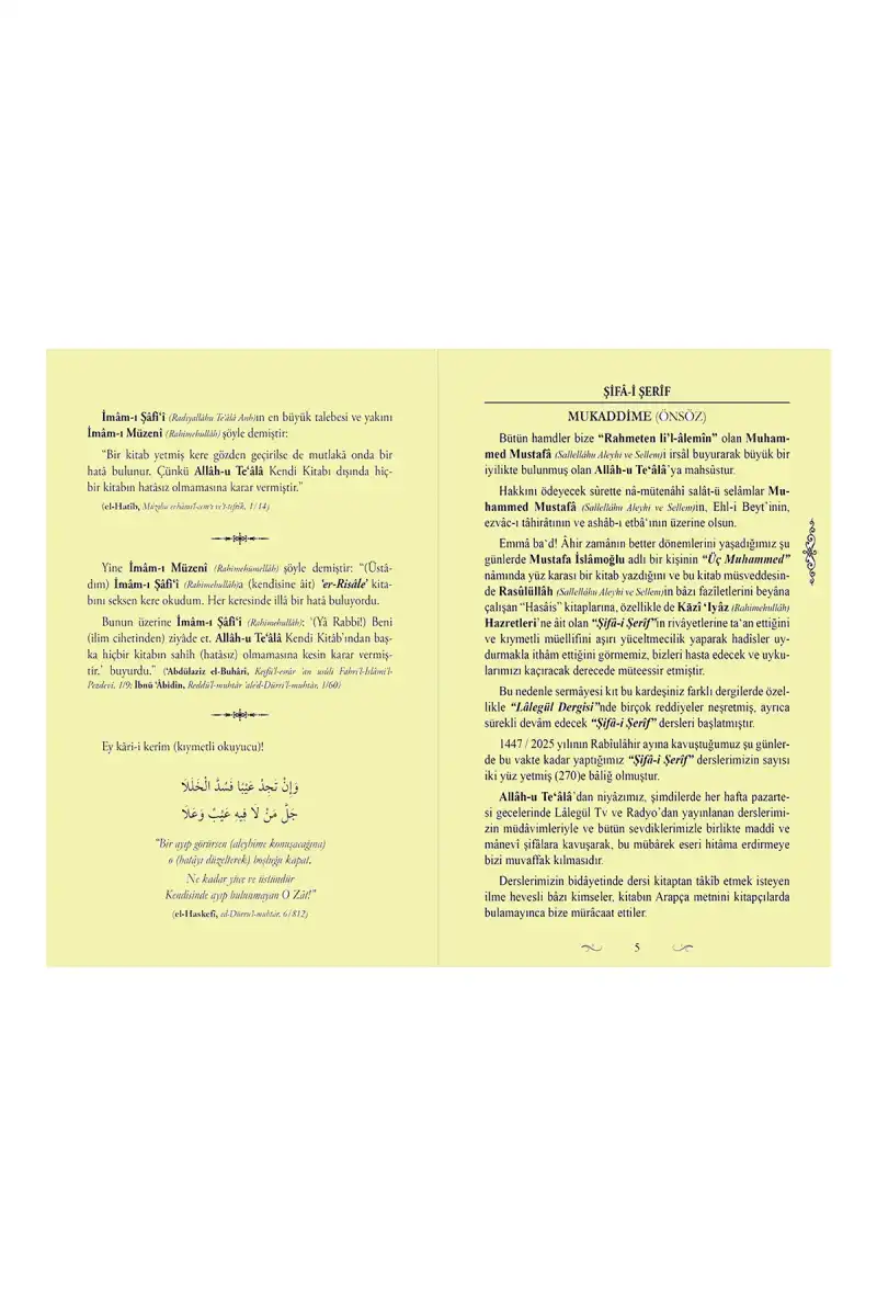 Aliyyul Kâri derki: Şifa kitabı, Nebi sallallahu aleyhi ve sellem’in şemaili (sureti ve ahlakı) hakkında yazılanların en mücmel ve yeterli olanıdır.