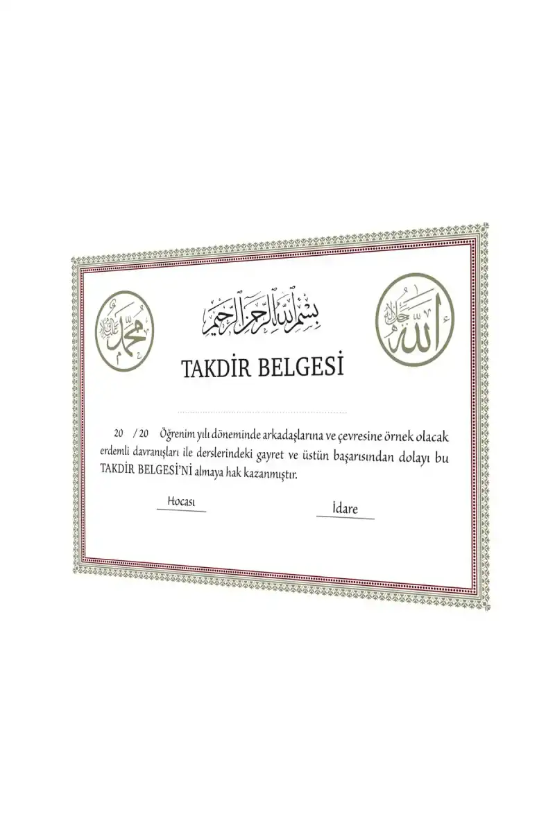 Takdir Belgesi Çerçeveli